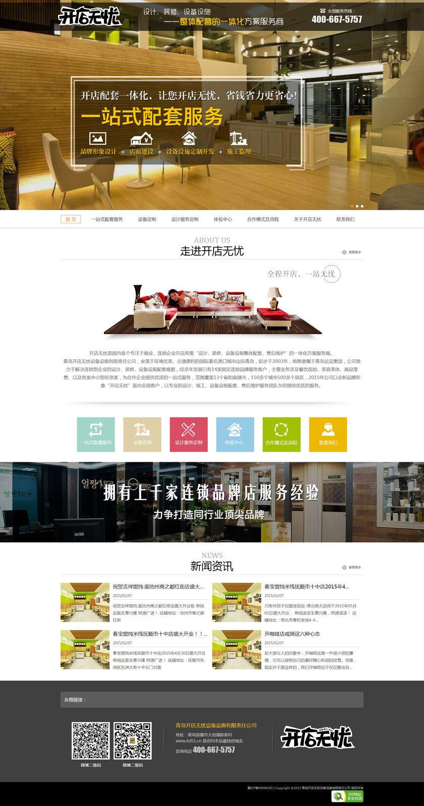开店无忧是国内首个专注于商业、连锁企业开店所需“设计、装修、设备设施整体配套、售后维护”的一体化方案服务商。